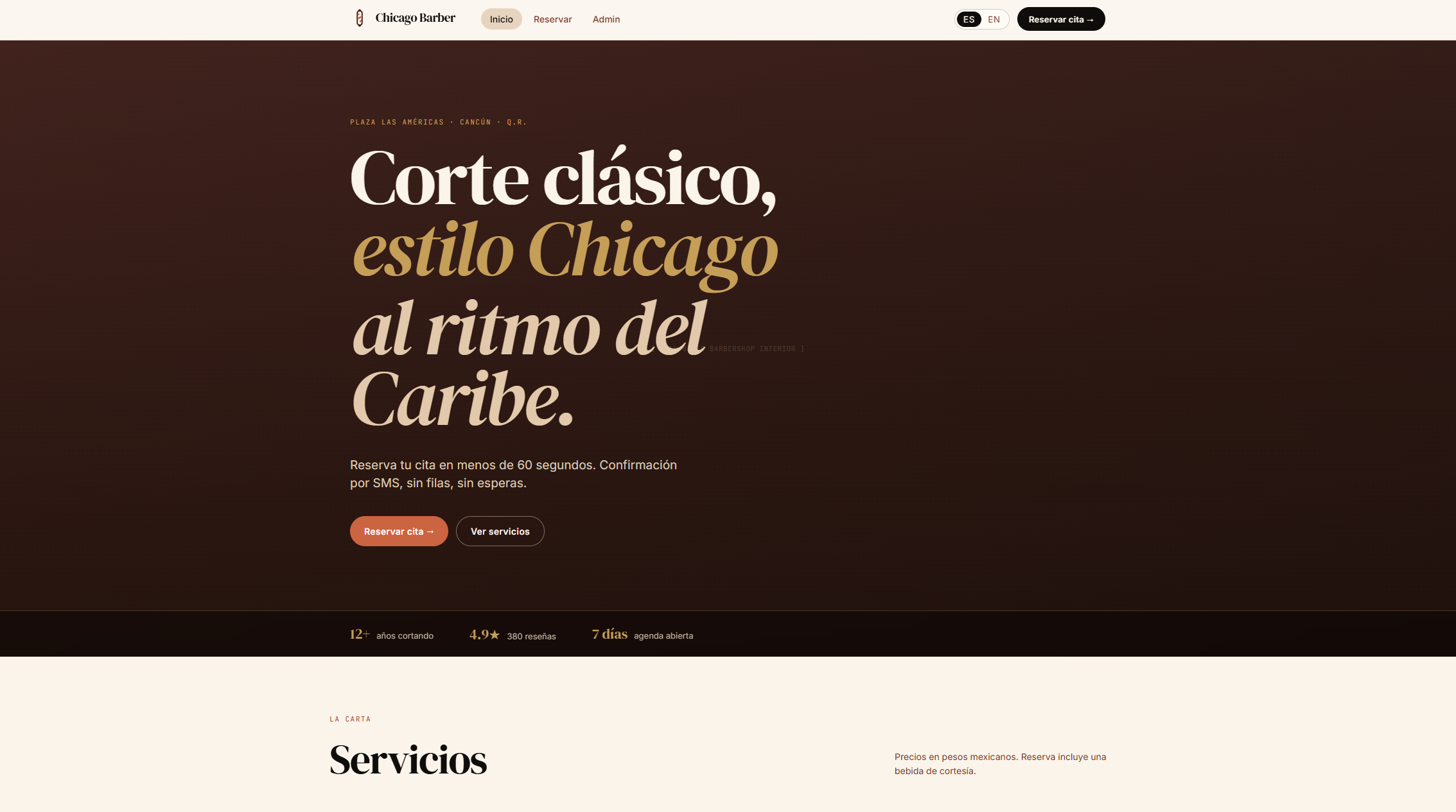 2025Propuesta de sistema de citas para barbería con reservas por calendario, SMS via Twilio y panel admin.